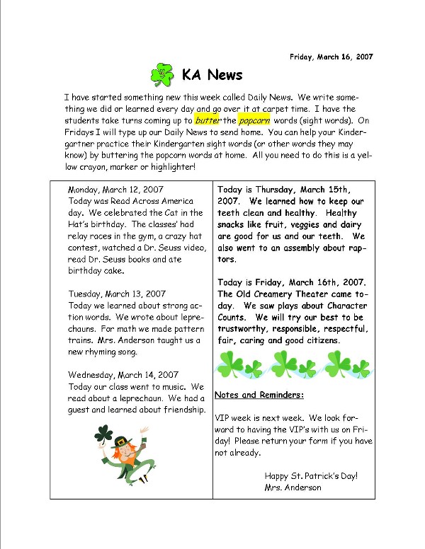Here is an example of a note I sent home when I taught Kindergarten.